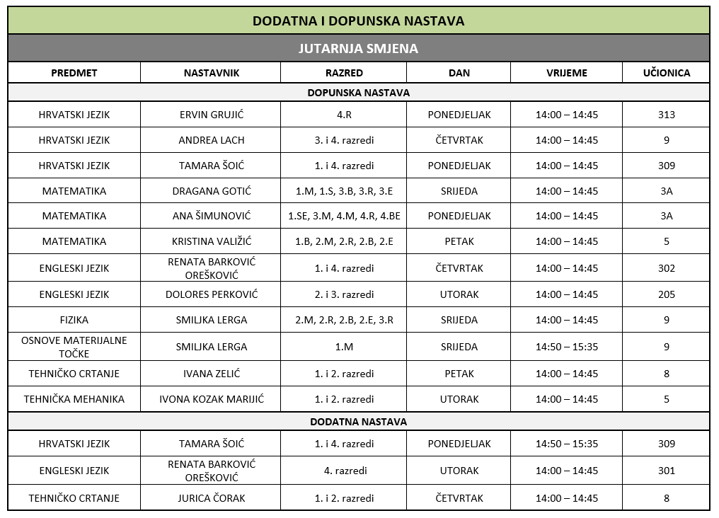 Raspored dodatne i dopunske nastave